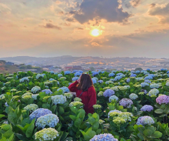 15h30: Xe đưa đoàn tham quan một khu du lịch mới toanh của Đà Lạt – Hoa Sơn Điền Trang. Đây là điểm du lịch đã làm mưa làm gió trên mạng xã hội trong thời gian gần đây dù mới khánh thành trong Noel vừa rồi. Tại khu du lịch có quy mô rộng lên đến 38 hecta này, quý khách có thể cảm nhận được sự hội tụ của nhiều cảnh đẹp Đà Lạt như: Cánh đồng tam giác mạch, Khu vườn hoa hồng cổ sapa, Hồ thác nước, tiểu cảnh quanh hồ, Con đường hoa đào Nhật Bản (nhập nguyên cây lớn từ Nhật), Khu nhà gỗ trên cây (Lưu trú đầy đủ tiện nghi), Cổng trời, Cây đa ngàn năm, Khu cắm trại trên thác nước 7 tầng,… tất cả được nằm gọn trong khu rừng nguyên sinh của Đà Lạt. Điều đặc biệt là mô hình bàn tay Phật khổng lồ, tương truyền sẽ đem đến sự may mắn cả năm cho những ai được một lần ngồi trong lòng tay Phật nơi đây.