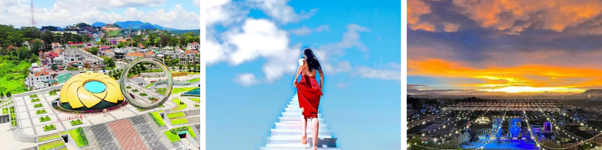 - Than quan Vườn Hoa Cẩm Tú Cầu – nơi có Cầu Vàng Đà Lạt, Nấc thang lên thiên đường, Vầng trăng cổ tích, Cầu tình yêu, Cửa sổ, Tổ chim, Nhà gỗ, đặc biệt có thêm nhiều loại hoa như: hoa cúc hoạ mi, nữ hoàng xanh và hoa cánh bướm để quý khách tha hồ sống ảo.