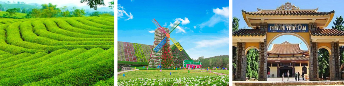 - Thiền Viện Trúc Lâm:Đây là một trong ba thiền viện lớn nhất nước ta, quý khách có thể tìm thấy những phút giây lắng đọng trong tâm hồn như ở chốn hư không, thanh khiết. Điều đặc biệt là quý khách có thể lên Thiền Viện bằng hệ thống cáp treo.