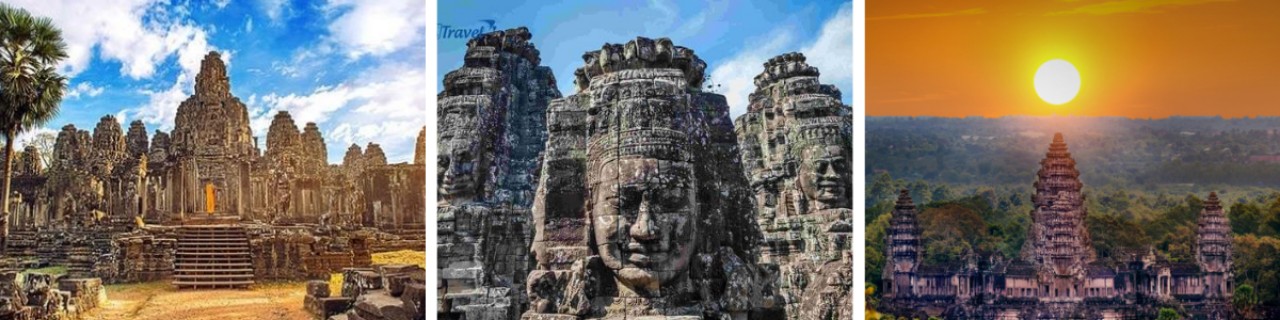 - Đền Bayon thuộc khu vực trung tâm của cổng nam đền Angkor Thom với 216 nụ cười bí ẩn. Tượng Bayon 4 mặt thể hiện “hỷ, nộ, ái, ố” trên từng nét mặt, với những tranh điêu khắc dài hàng trăm mét diễn tả lịch sử và xã hội Khmer thời xa xưa. Chiêm ngưỡng nghệ thuật kiến trúc Angkor hùng vĩ. Xe đưa quý khách đi ngang qua quảng trường đấu Voi – nơi tổ chức các lễ hội truyền thống của Người Khmer cổ, tháp 12 con giáp,….