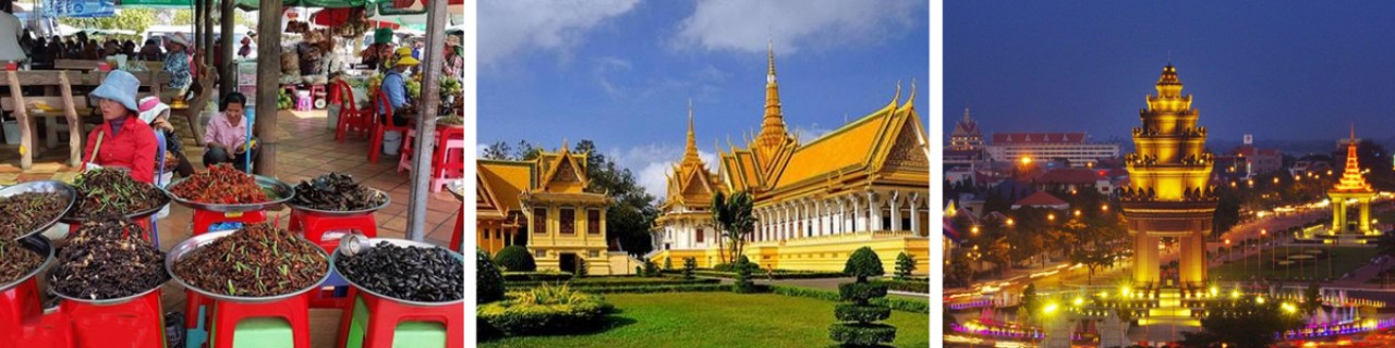 06h00: Quý khách ăn sáng tại khách sạn, làm thủ tục trả phòng khởi hành về Thủ Đô Phnom Penh. Trên đường đi quý khách ghé tham quan chợ côn trùng (chợ Skun) chuyên bán các loại côn trùng nhiều vỏ, gai, cánh, càng như nhện, châu chấu, dế, bò cạp, nhộng, gián,… được chế biến với từ chiên rán, nướng, ngâm rượu với các gia vị tẩm khác nhau mà khi nhìn thấy du khách phải muốn thử một lần.