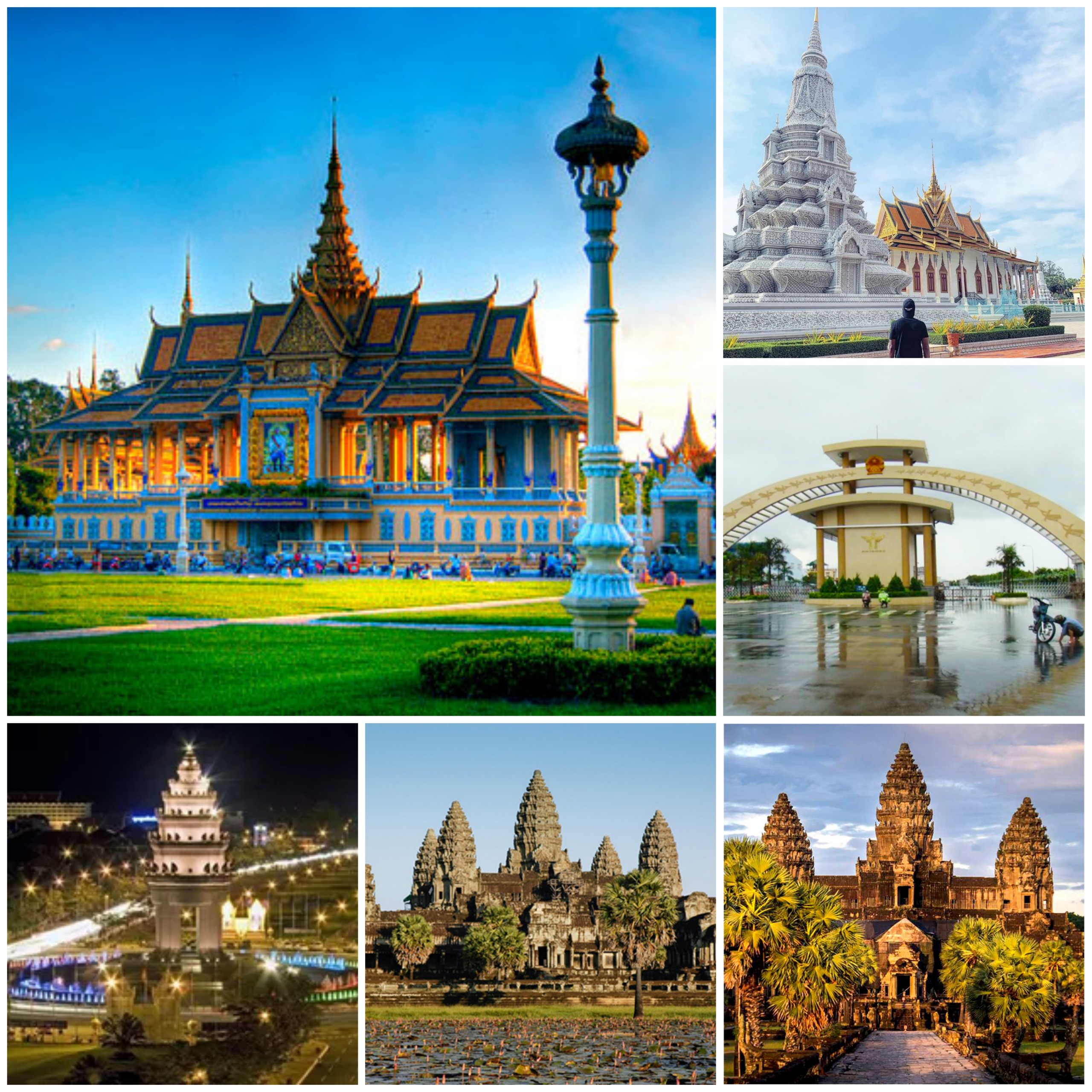 - Đền Angkor Wat “Di Sản Văn Hóa” của thế giới, thiêng liêng bậc nhất ở Cambodia. Đền Angkor Wat được vua Suryavarman II xây dựng vào nửa đầu thế kỷ XII. Diện tích của cả quần thể kéo dài hơn 248 dặm vuông (400 km2), chạy bao quanh đền là một hào nước sâu và rộng. Với thiết kế ban đầu được xây dựng để thờ Hindu giáo nhưng sau này do sự du nhập và phát triển mạnh của đạo Phật, Angkor Wat đã chuyển sang thờ Phật giáo.