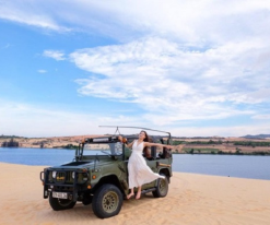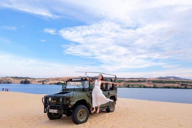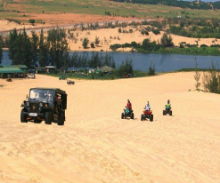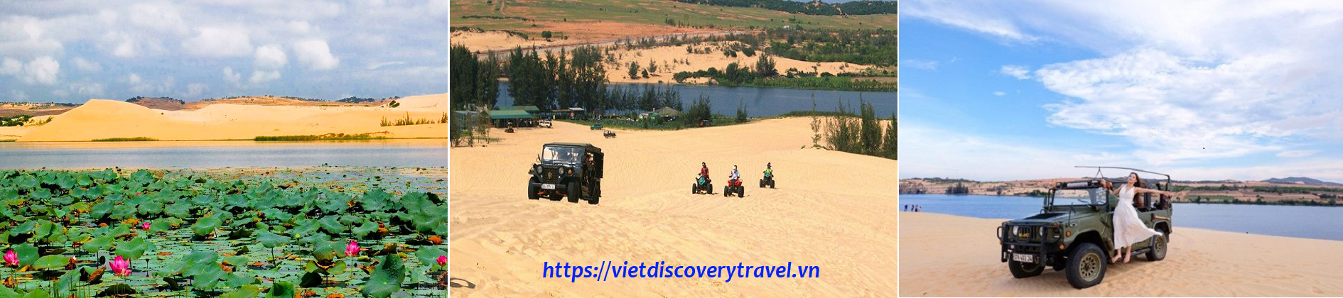 07h30: Đoàn khởi hành đi tham quan, Chinh phục khu du lịch Bàu Trắng (Hay còn gọi là Bàu Sen) – Một hồ nước ngọt được bao quanh bởi những triền cát trắng với cái nắng, cái gió được thiên nhiên ban tặng tạo nên một vẻ đẹp hoang sơ đến tuyệt vời. Đến với Bàu Trắng, Quý khách có thể thuê một chiếc thuyền nhỏ để để khám phá, dạo chơi và câu cá hay chinh phục những triền cát bằng xe Jeep sẽ tạo cho Quý khách những cảm giác thú vị. (chi phí xe jeep tự túc )